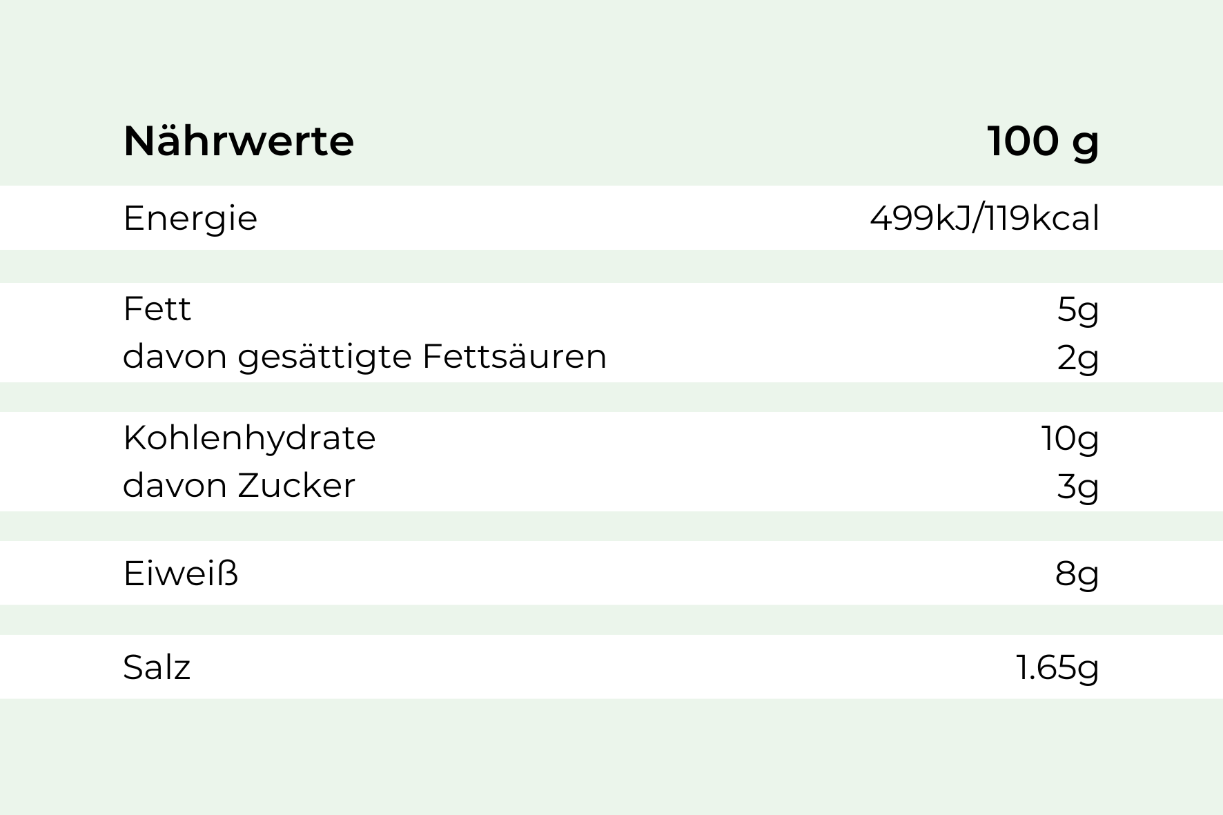 AUSZUG AUS DEN NÄHRWERTEN / 100 G Brennwert: 119 kcal