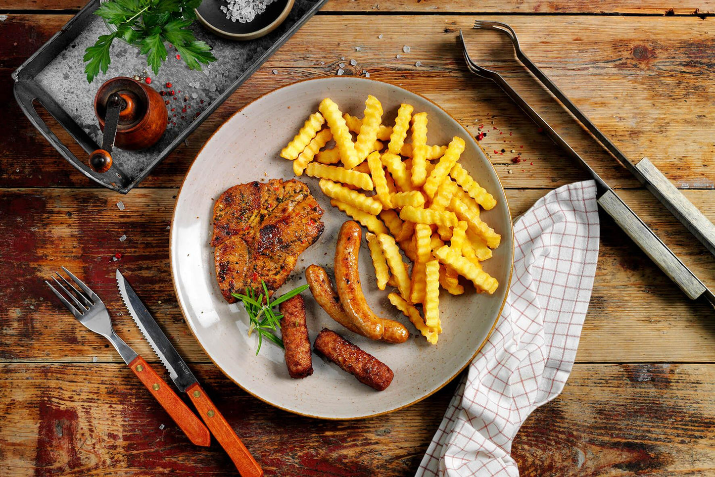 Sowohl das köstlich marinierte Schweinehacksteak, die Bratwürste nach fränkischer Art als auch die mediterranen Cevapcici stammen aus unserer hauseigenen Metzgerei und schmecken wie direkt vom Grill. Ein kulinarisches Erlebnis auf höchstem Niveau, das mit krossen Pommes Frites schmackhaft abgerundet wird.