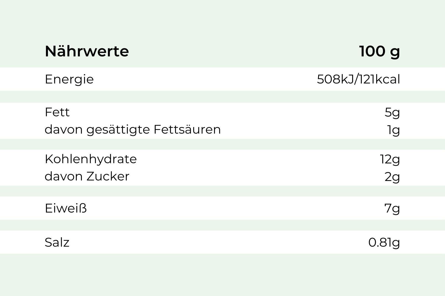 AUSZUG AUS DEN NÄHRWERTEN / 100 G Brennwert: 127 kcal